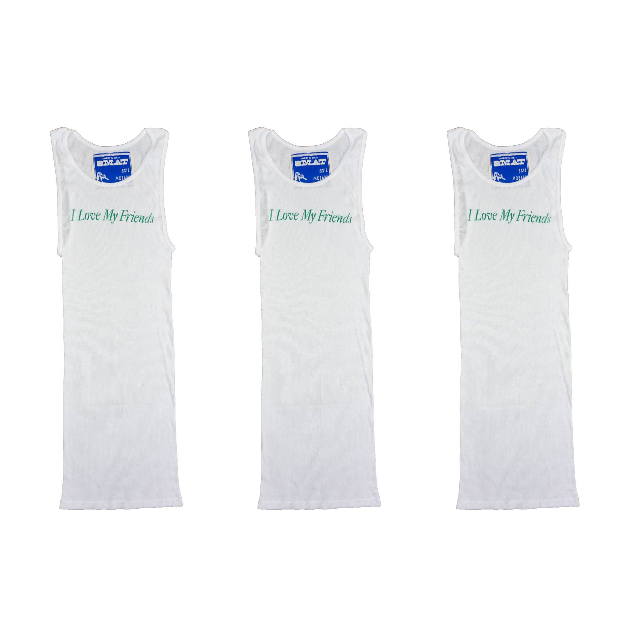 Introducing the Friendship 3-Pack Tank Tops, a timeless wardrobe staple. These genderless, soft ribbed tank tops are made to order and feature the signature "I Love My Friends" message screen printed in a rich Forest Green. Made of 100% ribbed cotton, they offer a comfortable and breathable fit that’s perfect for any season. Share them with your closest friends or keep all three for yourself—these tanks are designed to celebrate community and connection. Each tank is hand-printed, making every piece uniquely yours.